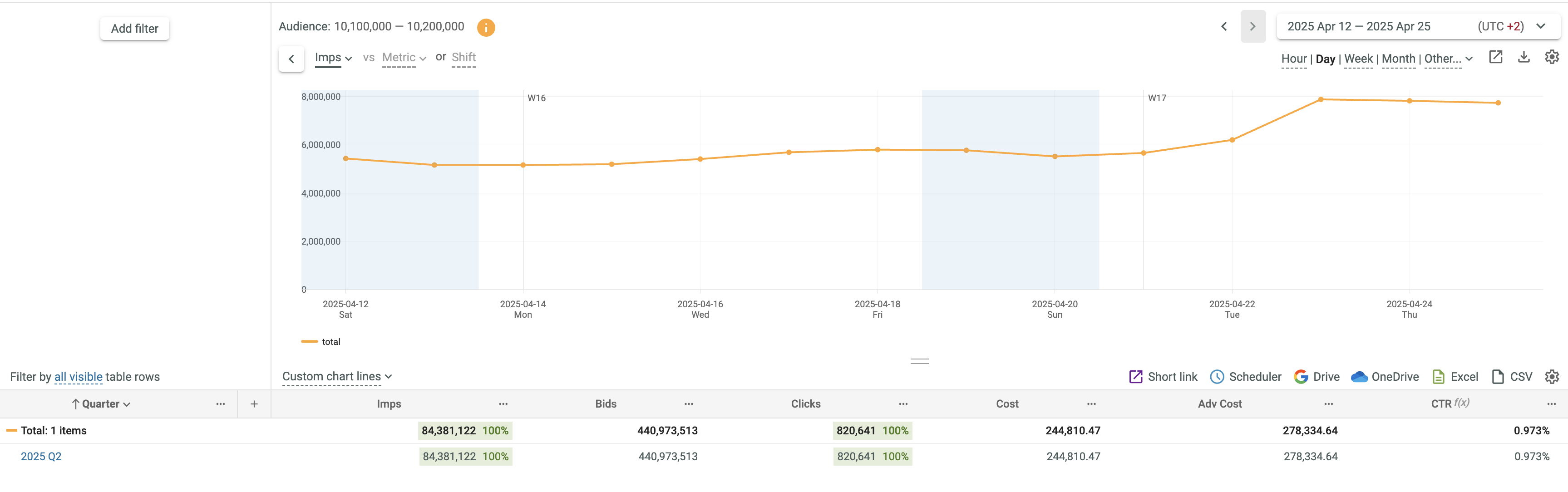 • Click the corresponding link ( Hour, Day, Week,  MonthQuarter or Year) above the Chart. Quarter and Year links are located in the Other... drop-down list.