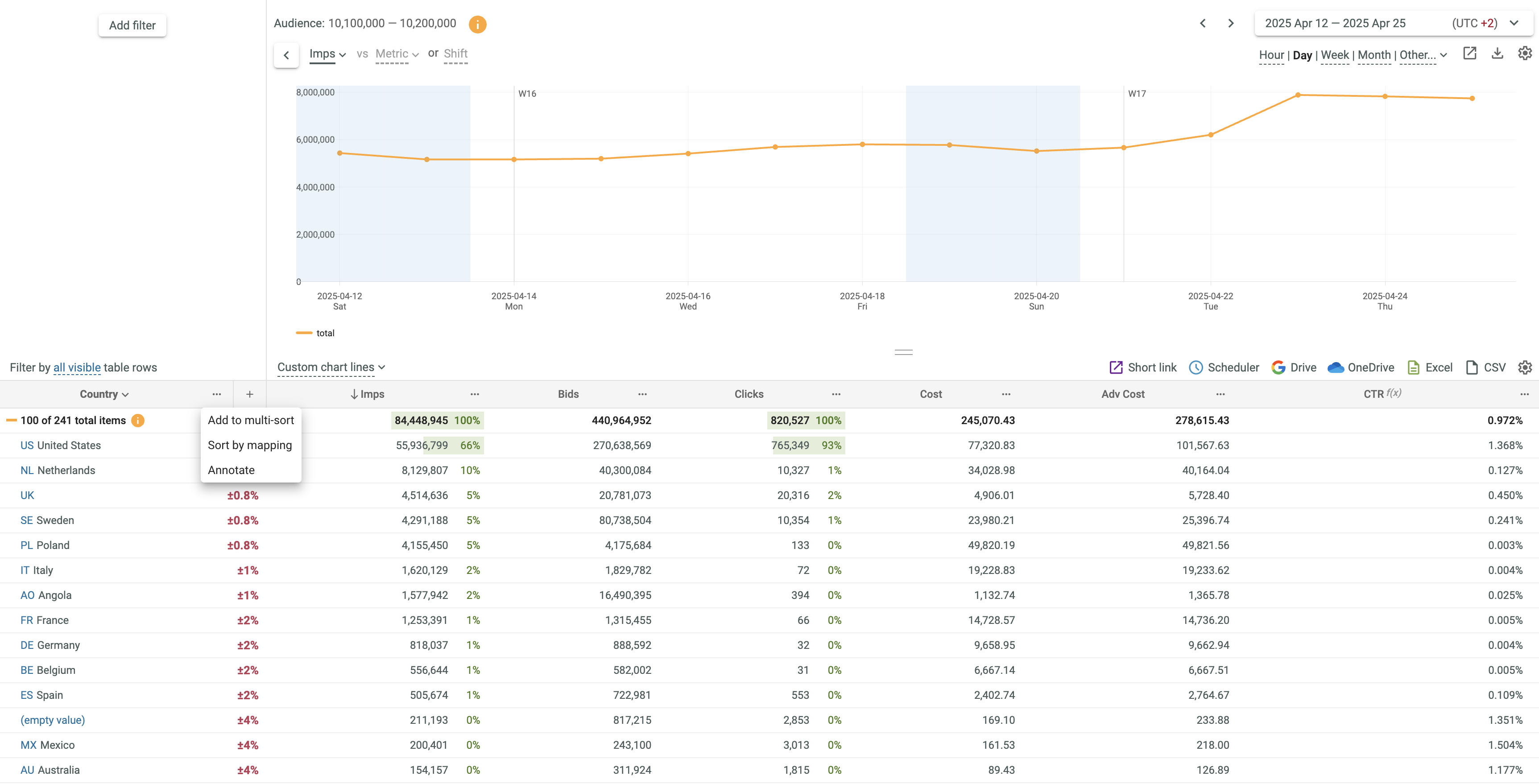 • Select the Add to multi-sort option from the appeared popup menu.
