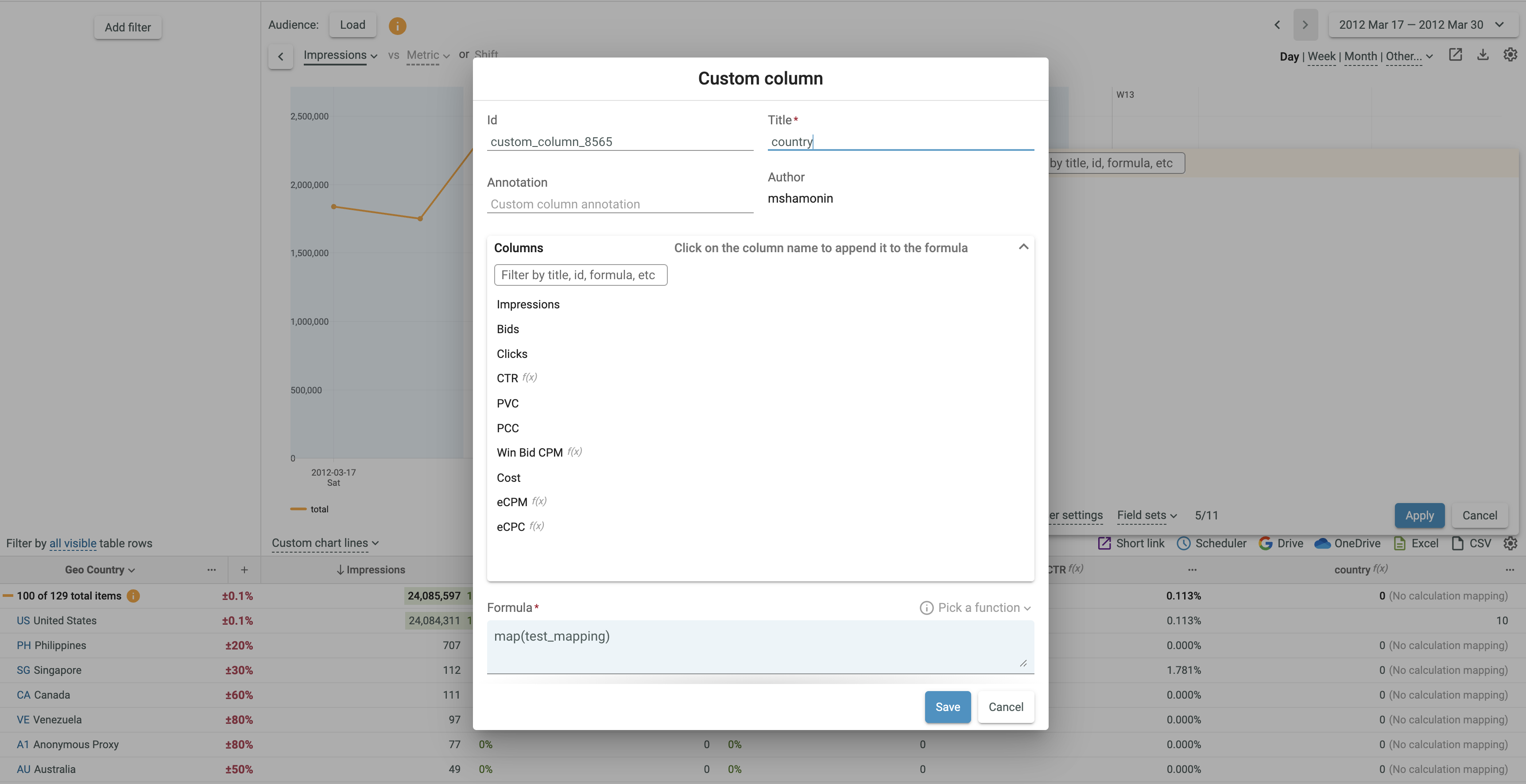 Calculation Mappings are very useful for performing various calculations based on integer or float numbers associated with particular key values for successive calculations (for example, displaying financial metrics in several different currencies for each value of a particular key). You can create several mappings for any key in your project. Mapping names are unique across each project.