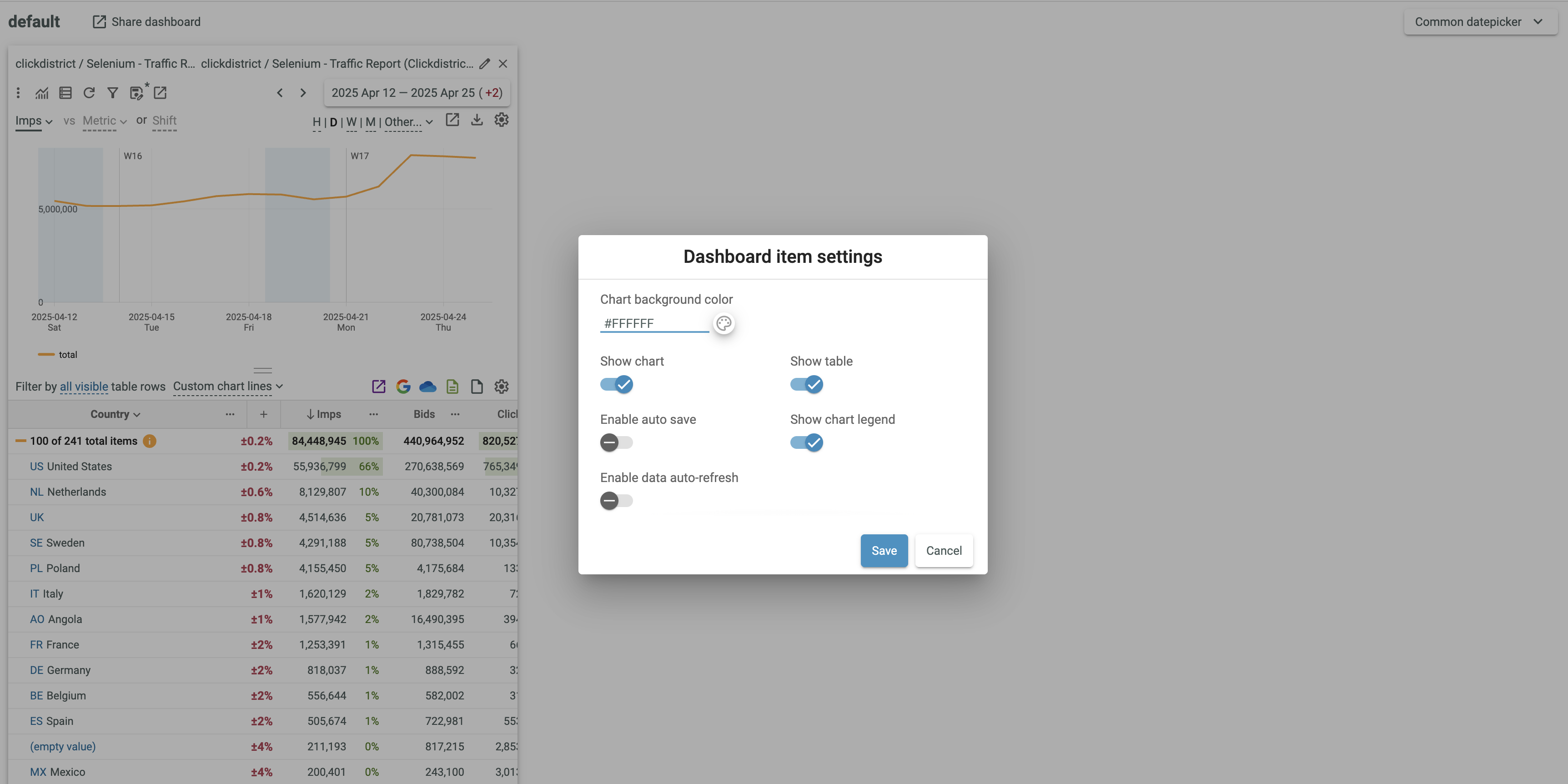 Displaying/Hiding Data Tables of Dashboard Items¶
