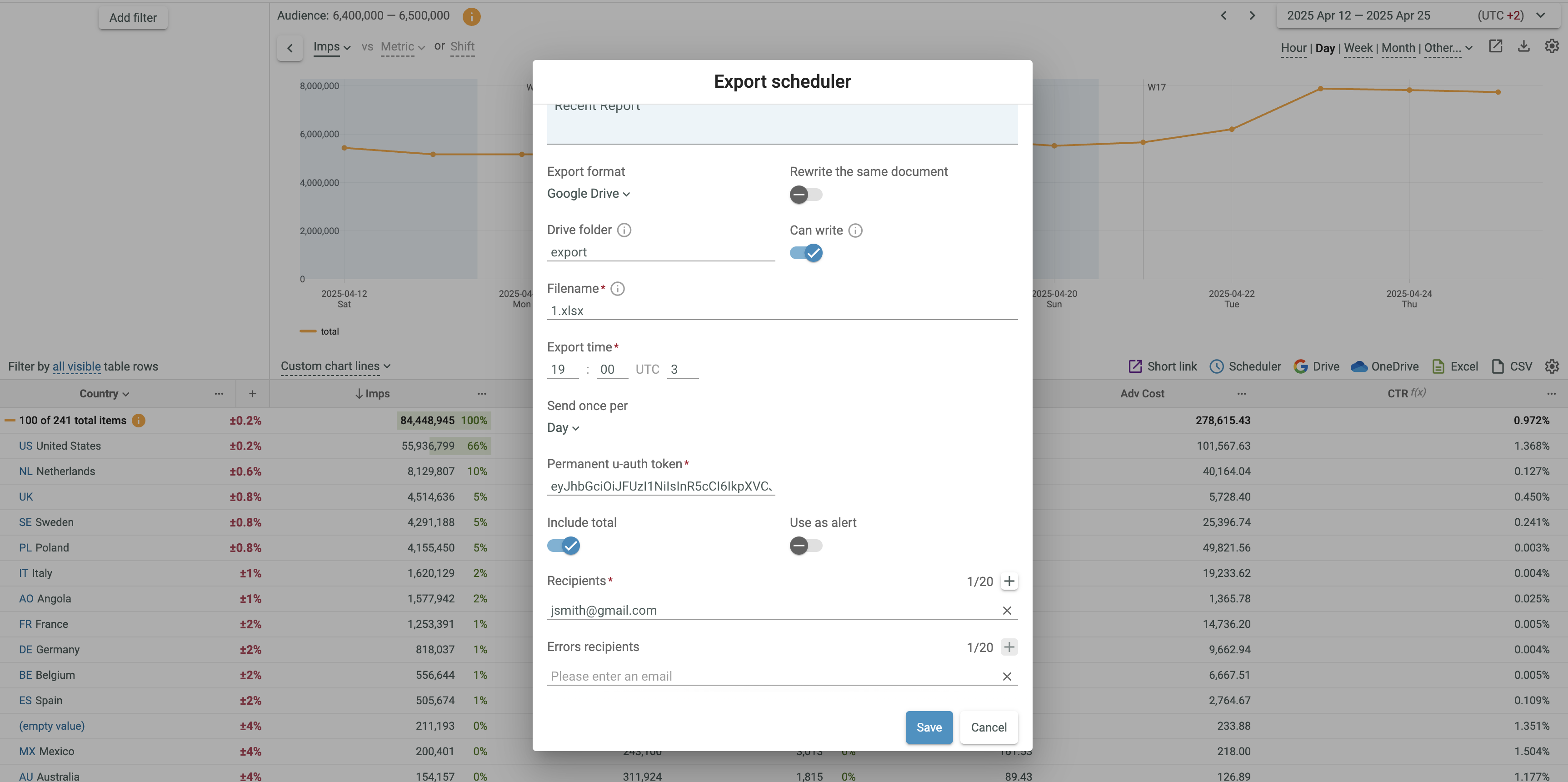 - Select the desired export format ( Google Drive, Microsoft OneDrive, TSV, CSV, Excel, TSV.GZ) from the corresponding drop-down list.